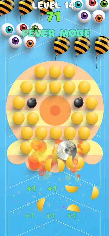 조심스럽게 각 레벨을 통해 "파워 업"이 있을 것입니다. 터치하면 톱의 이동 속도가 매우 빨라질 것입니다. 이제 폭탄에 맞지 않으려면 더 능숙해야 합니다. 때때로 당신은 보너스 카드를 플레이할 것입니다. 당신은 단순히 긴장을 풀 필요가 있습니다.