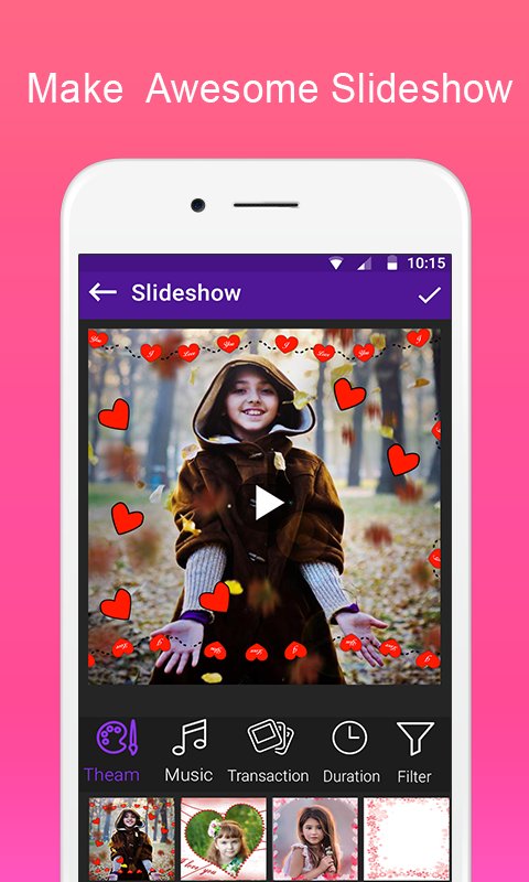 Modern Image to video converter for Create movie from your device gallery, image gallery using this application. In this application you can select unlimited images for