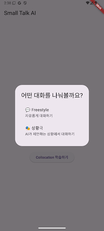 Small Talk AI는 여러분의 손안에 있는 개인 영어 튜터입니다. 더 이상 비싼 학원이나 시간 제약에 얽매이지 마세요. 언제 어디서든, 내가 원할 때마다 AI와 함께 자연스러운 영어 회화를 연습하고 실력을 키울 수 있습니다.