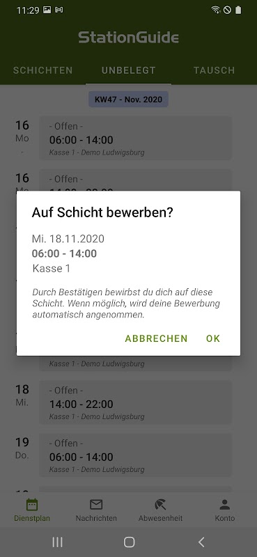+ Kommende Schichten einsehen
