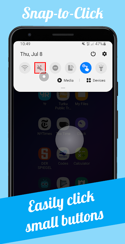 컴퓨터와 같은 커서/포인터를 사용하여 한 손으로 큰 스마트폰을 편리하게 제어할 수 있습니다.