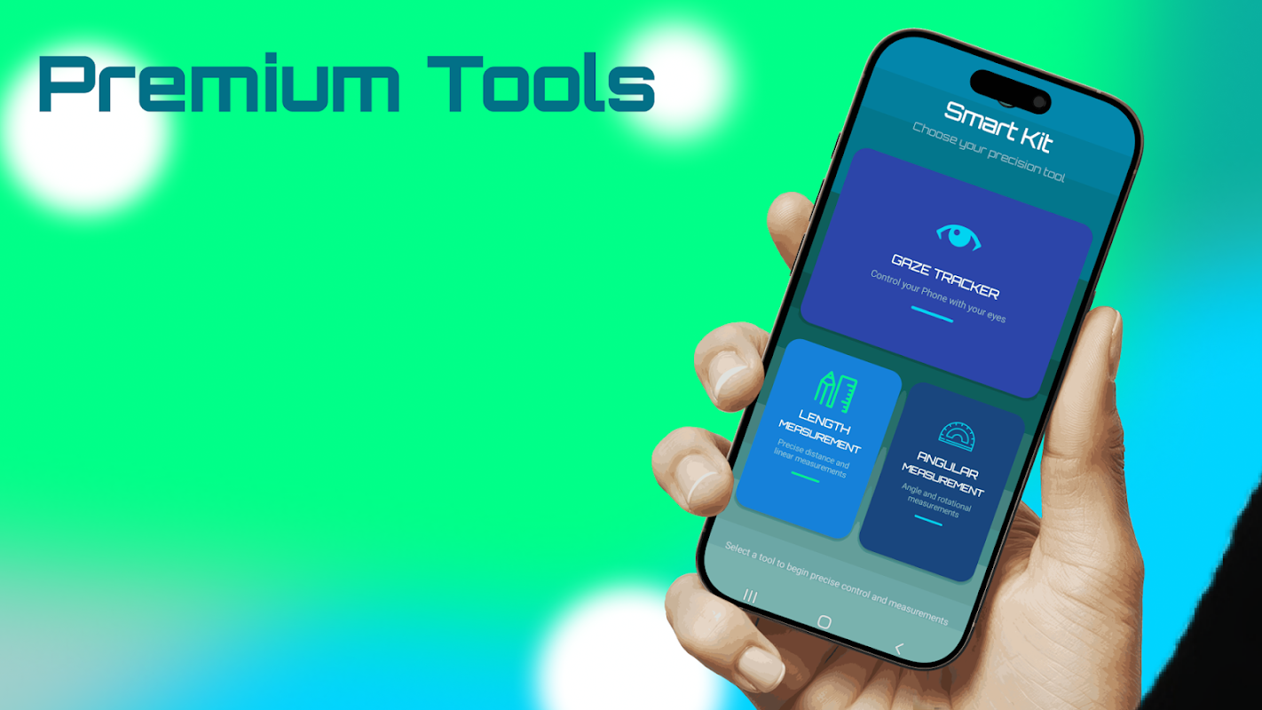 Smart Kit은 스마트폰을 더욱 스마트하고 편리하게 사용할 수 있도록 설계된 강력한 도구 모음입니다. 실제 사물을 측정하거나, 스마트폰을 만지지 않고 제어할 때 Smart Kit이 모든 것을 해결해 드립니다.