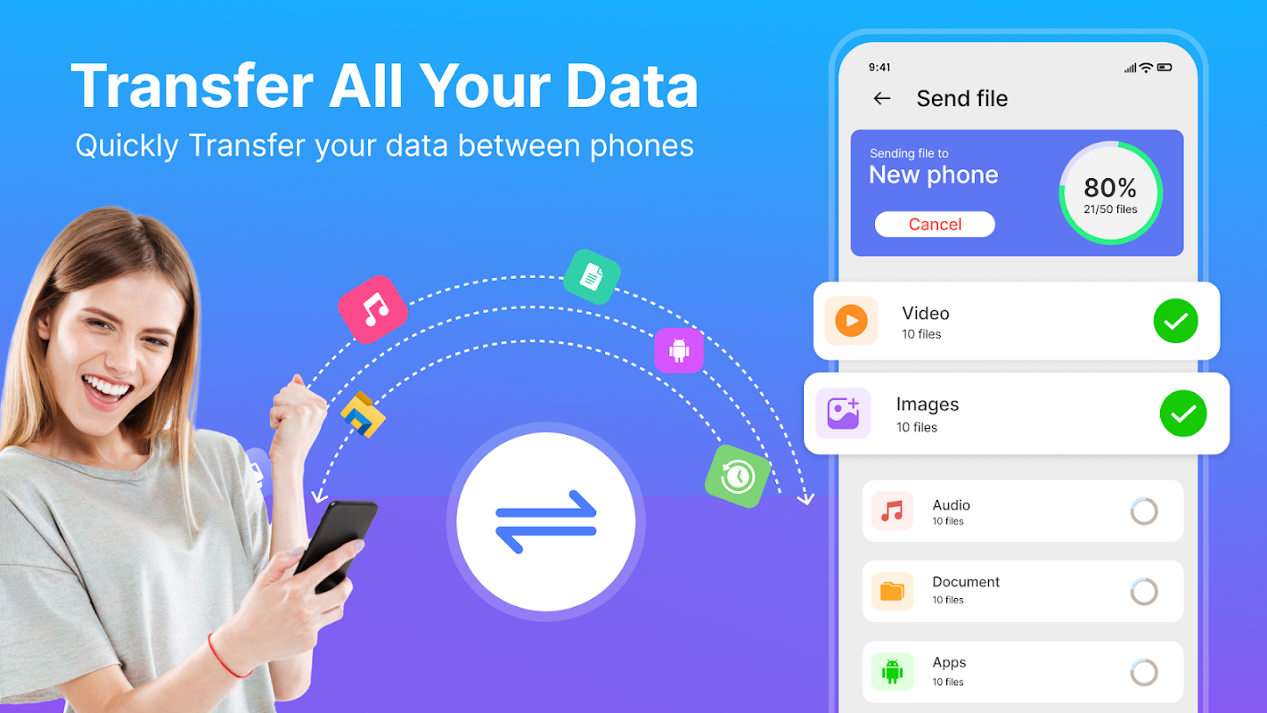 휴대폰을 업그레이드하거나 데이터를 백업하시나요? Swift-Share는 바로 당신을 위한 최고의 전송 앱입니다. 몇 번의 탭만으로 끝납니다. 특별한 기술 없이도 말이죠. 디지털 라이프를 이어가는 가장 쉬운 방법입니다!