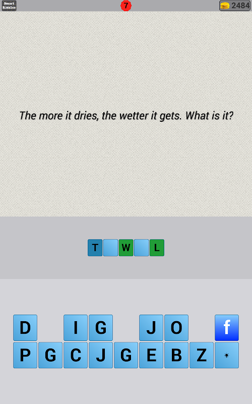 Collect coins for spending by guessing the answers, sharing with your friends, giving rate to the good riddle app or downloading a free game. The coins should be motivation so always try to give precise answers with least hints! Also spend your coins wisely.