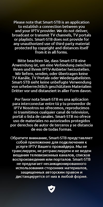 이는 귀하와 IPTV 제공업체를 상호 연결하는 애플리케이션입니다. 우리는 TV 채널, 스트림 또는 재생 목록을 방송, 재방송 또는 전송하지 않습니다. 앱에는 스트림이 포함되어 있지 않습니다. 스트림은 자체 포털에서 제공됩니다. 앱을 사용하려면 자신만의 콘텐츠가 포함된 유효한 IPTV 포털이나 재생 목록이 필요합니다. 앱은 디코딩 성능을 사용할 수 있는 디지털 TV 튜너가 있는 Android 스마트 TV에서 가장 잘 작동합니다. Android TV 박스나 TV 튜너가 없는 기기에서는 제대로 작동하지 않을 수 있습니다. 앱은 휴대용 기기(휴대폰, 태블릿, 폴더블 기기)의 적응형 스트림에서 가장 잘 작동합니다.
