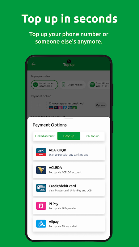 - 은행 카드, 스마트 카드 또는 전자 지갑을 통해 잔액을 쉽게 충전할 수 있습니다.