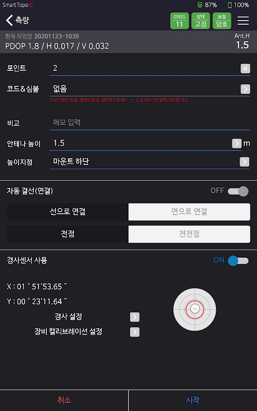 - R10, R12 GNSS 수신기 내부 센서를 사용한 기울기 측량