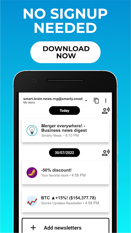 임의의 익명 이메일을 사용하십시오. [email protected]은 뉴스레터를 구독하기 위해 앱에서 생성하므로 아무도 당신이 누구인지 알 수 없습니다. 이메일은 개인 정보 보호를 위해 기기에 저장됩니다.