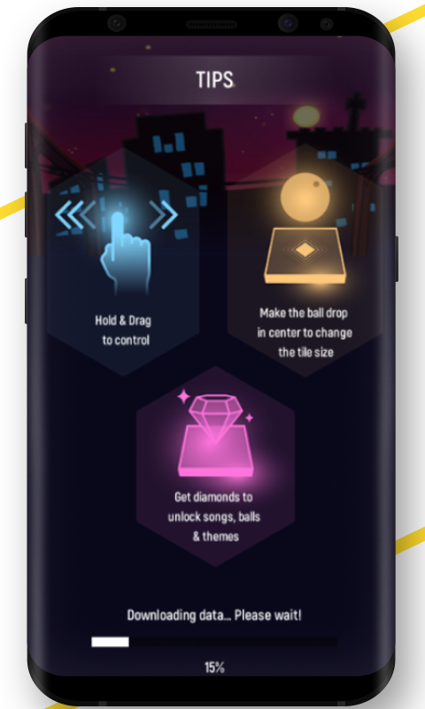 1. 타일을 뛰어 넘도록 공을 제어하기 위해 2면으로 터치하고 길게 드래그하십시오.
