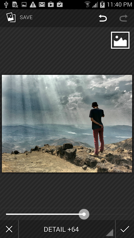Enhance the details in a photo. Unlike some apps, this doesn't just sharpen the edges but really brings out features you might not be able to see otherwise.
