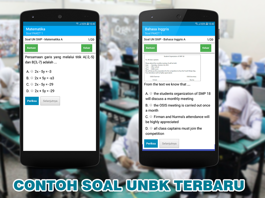 SMP MTS UNBK 시뮬레이션 시험 문제 응용 프로그램에는 모든 학생이 가장 좋아하는 선택 고등학교 레벨 또는 학생의 꿈.