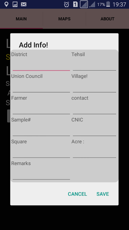 Save Information of every soil sample collected