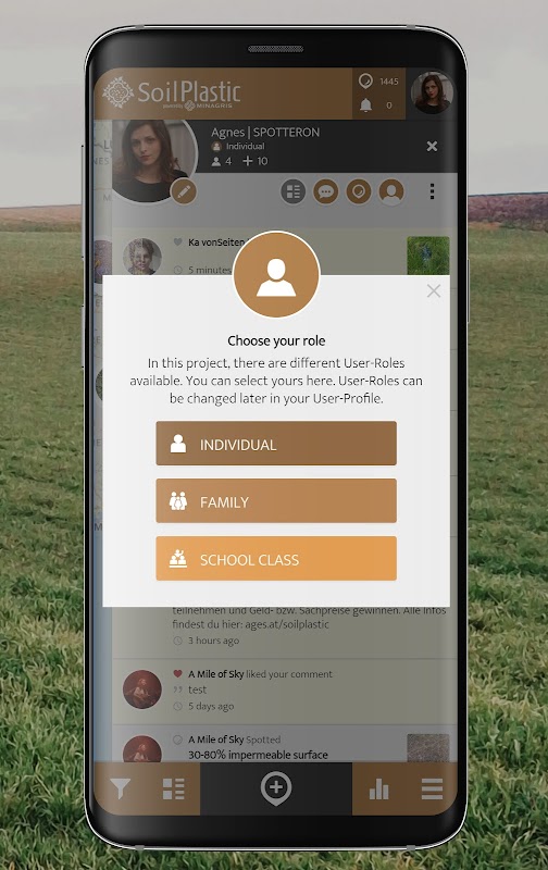 이 앱인 SoilPlastic은 이 중요한 연구에 기여할 수 있는 기회를 제공합니다. 농업용 토양에서 플라스틱을 관찰하고 문서화할 수 있습니다. 이 제출물은 익명으로 처리되며 농장에 얼마나 많은 플라스틱이 있는지 확인하는 데 도움이 됩니다. 다음 번에 산책할 때 보이는 플라스틱을 업로드하지 않겠습니까?