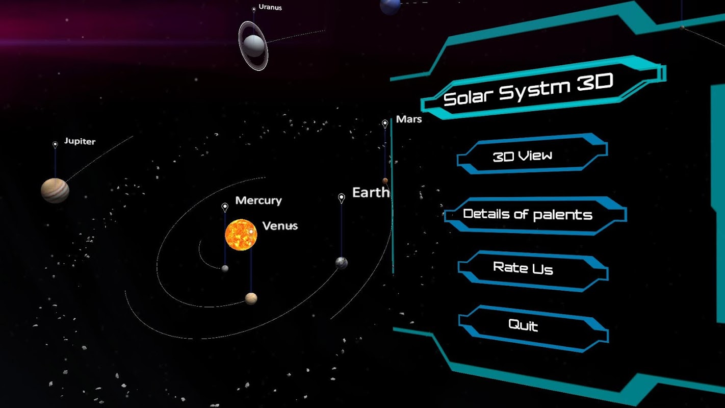 Solar System 3D Scope is an educational application for anyone interested in our amazing space to get information. The Solar System Scope is a fun way of Exploring, Discovering, wealth of information and Playing with the Solar System, planets and Outer Space. The solar system 3d scope is a space exploration app. Now you can explore information and experience the celestial objects with augmented reality. The position and orbits of the planets are real according to date and time. Start your fascinating journey of planets in space through the realms of space and explore the universe we live in. This app contains all the solar system space scope information. Solar system 3D scope: space Simulator contains many views using realistic models and celestial simulations and brings you closer to the furthest reaches of our world space and lets you experience lots of fantastic space sceneries.
