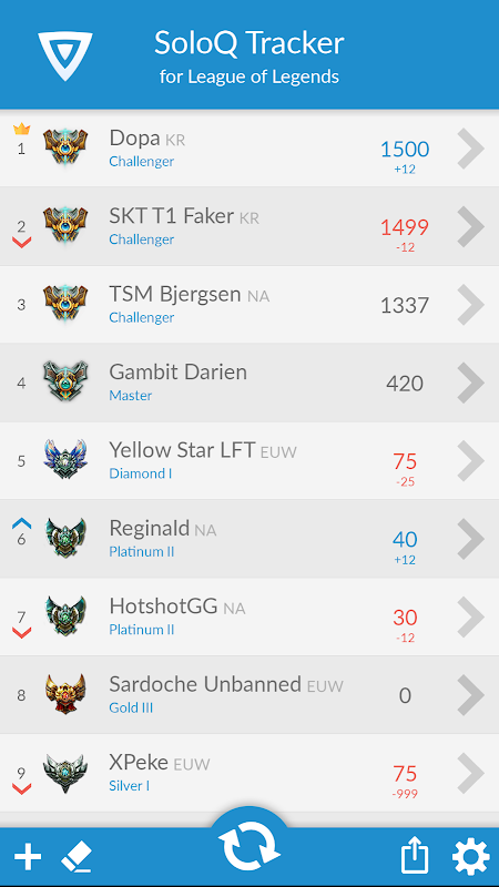 Simply the best app to track all your League of Legends friends' solo ranking !