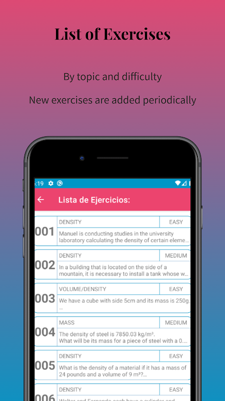 This application is intended for professors, teachers and students who want to learn to calculate density, mass and volume exercises.