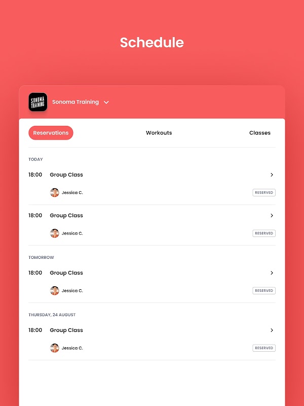 Sonoma Training 회원을 위한 클래스 예약 및 계정 관리
