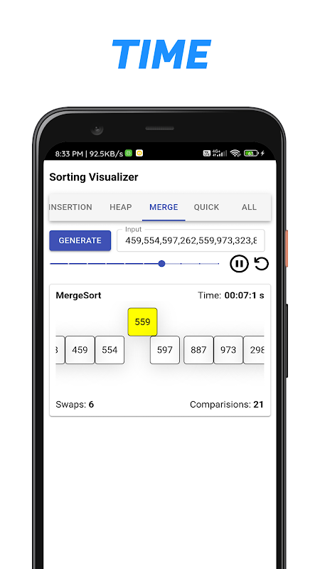 이 앱은 여러 정렬 알고리즘의 시각화를 지원합니다.