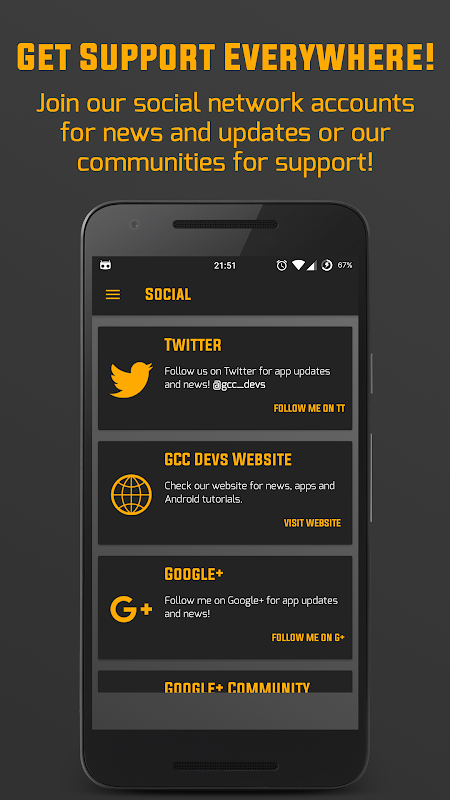 - Long use of camera flashlight can damage the flash LED. Not recommended to use more than 30min. GCC Devs will not take responsibilities on any damage caused in your device.