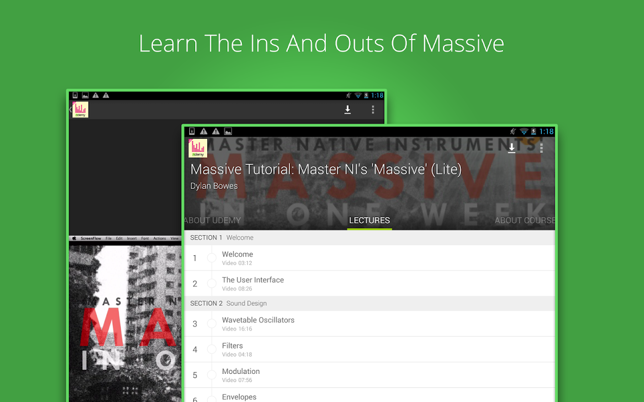 This course is a comprehensive training course in the popular and powerful "Massive" VST plug-in from Native Instruments. Using 100% high-definition screencasts, you will learn the ins and outs of this software. It is the free (lite) version of my full course on Massive.