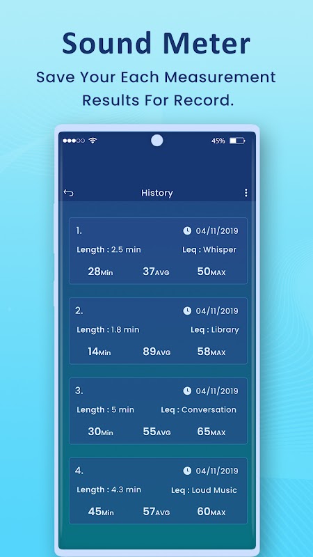 - 최소/평균/최대 데시벨 값을 표시합니다.