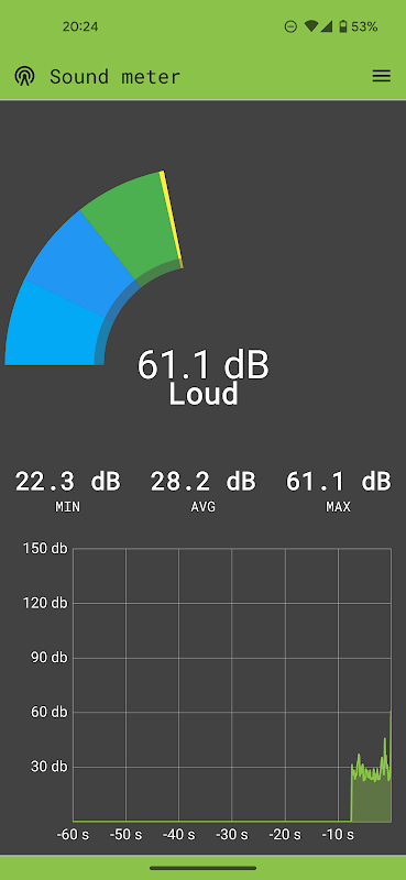 사운드 미터는 Android 기기를 위한 간단하고 사용하기 쉬운 사운드 레벨 미터(또는 SPL)입니다. 사용자 친화적인 인터페이스에서 주변의 현재 소음 수준을 표시합니다. 최소/평균/최대 데시벨 값 및 높은 수준의 소음에 대한 경고. 또한 마지막 순간에 측정된 값을 그래프로 표시합니다. 소음 측정기는 주변 소음 수준이 궁금한 사람들에게 필수적인 도구입니다.
