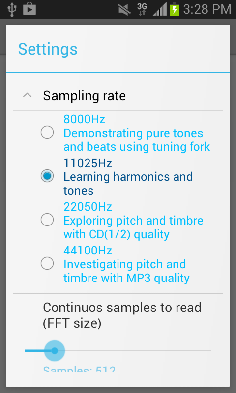 Before you use this app, you may need to clear RAM with your Android Task manager to reserve more sufficient memory for active audio signal processing and quantization.