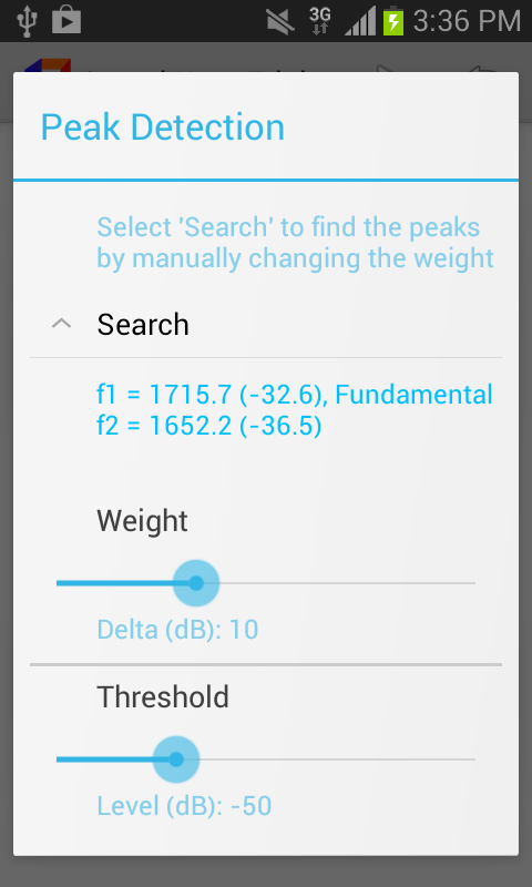 3. View amplitude resultant in dB scale, search peak frequency and more.