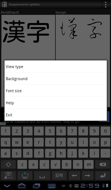 입력 한 한자를 초서체로 표시하는 응용 프로그램입니다.