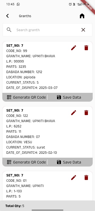 이 앱을 사용하면 사용자는 첫 번째 및 마지막 페이지 이미지를 캡처하고 이를 위치와 연결하고 식별을 위한 고유한 QR 코드를 생성하여 파견된 각 Granth 및 Tadpatra에 대한 세부 항목을 생성할 수 있습니다. 역사적인 경전을 관리하든 중요한 원고를 관리하든 이 앱은 이를 효율적이고 정중하게 추적하는 데 도움이 됩니다.