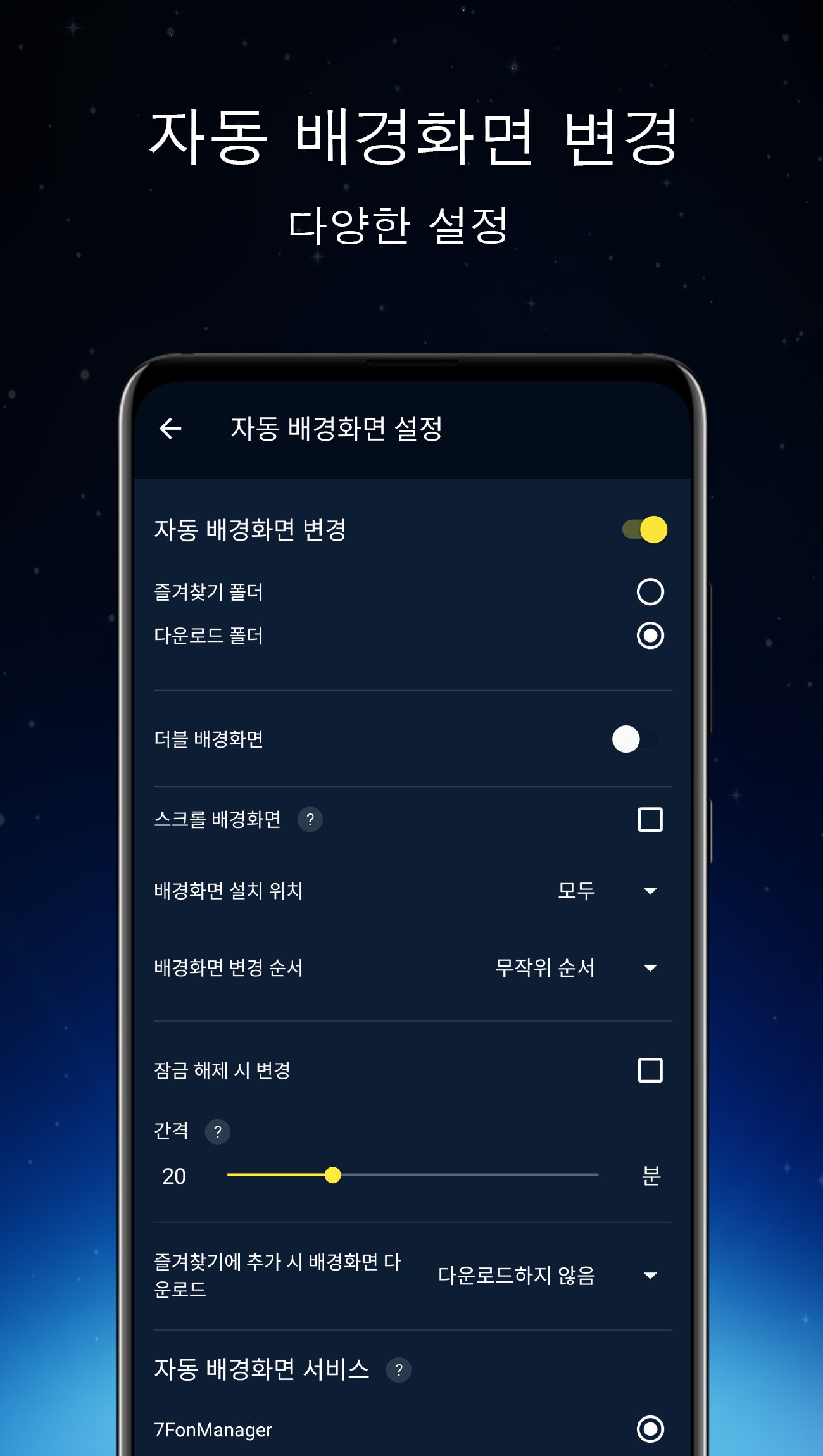 • 배경화면을 미리 다운로드해 인터넷 없이도 설정할 수 있습니다.