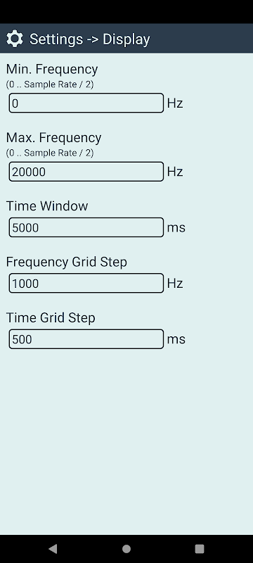 • 주파수 그리드 단계(Hz) = 수평 구분선을 그립니다.