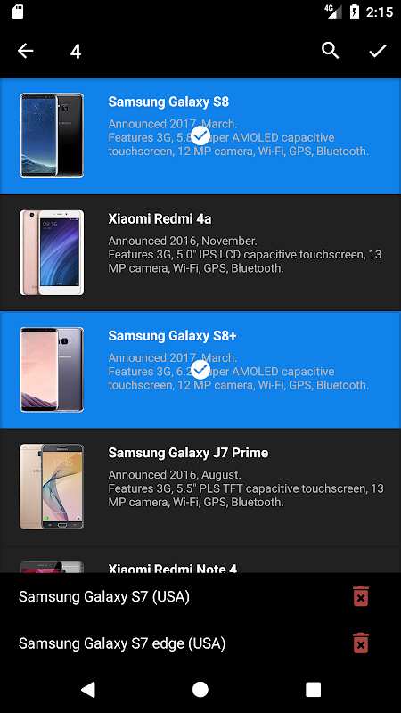한 번에 최대 4 개의 스마트 폰 사양 비교