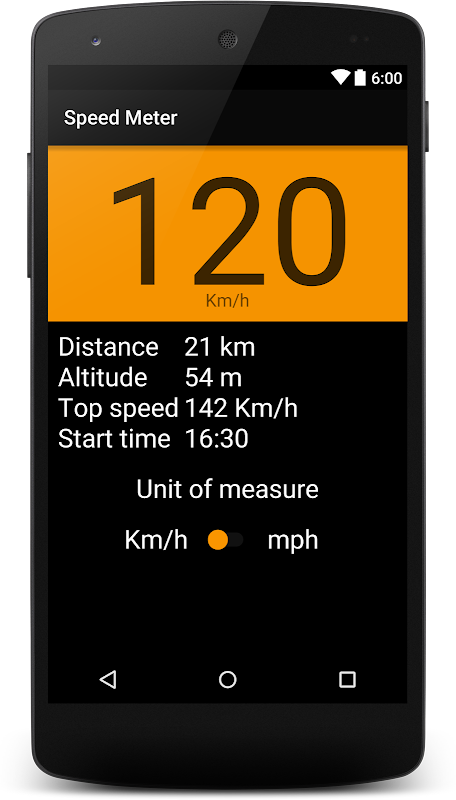 GPS speed meter allows the user to measure speed, top speed, distance, altitude and start time.