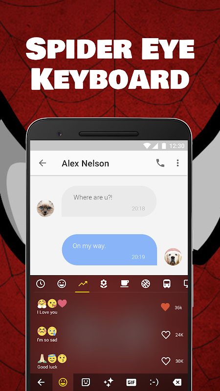 This Spider Eye Keyboard Theme is a plugin app, please download the main app Facemoji Keyboard + GIFS for Spider Eye Keyboard Theme to run.