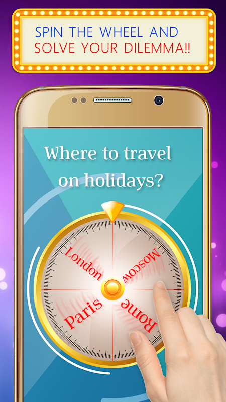 🌞 결별에 작별 인사! 룰렛을 돌리고 답을 얻으십시오! "휠 오브 포춘 – 의사 결정 게임"은 새로운 "의사 결정자"과 "랜덤 피커"로 올바른 선택을 도와줍니다. 이 선택 생성기는 올바른 결정을 내리는 과정에서 막대한 도움을 제공합니다. "행운의 바퀴"을 돌리면 절대 실패하지 않을 것입니다! 때때로 "무작위 선택"를 만드는 것이 생각보다 어렵지만이 "랜덤 셀렉터"를 사용하면 쉽게 만들 수 있습니다! 휠 오브 포춘 – 의사 결정 게임은 일상적인 사용을위한 앱이므로 행운의 휠 슬롯에 옵션을 넣고 버튼을 누르고 "결정의 바퀴"이 작동하는 것을 관찰하십시오! 결과에 만족하지 않으면 "의사 결정 룰렛"은 항상 대안을 제공 할 준비가되었습니다! 다시 돌려서 몇 시간 동안이 "스피너 게임"을 재생할 수 있습니다! 이 "휠 시뮬레이터를 돌리십시오"는 원하는대로 사용자 정의 할 수 있으므로 독창적 인 방법으로 임의의 도면 생성기를 고유 한 방식으로 설계하십시오! 이 randomizer 앱을 무료로 다운로드하면 의심 스러울 때 좋은 도우미가 될 것입니다.