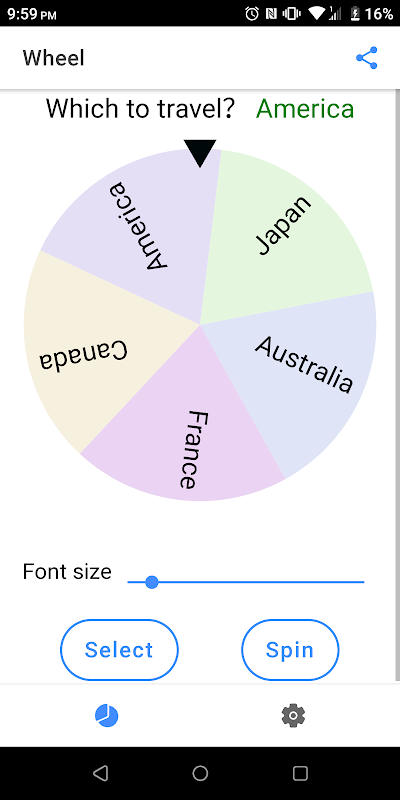 바퀴를 돌리다. 무엇을 선택하는지 보려면!