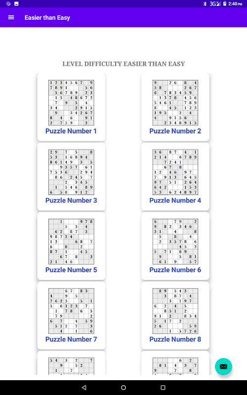 The content is divided in 5 levels. No number keyboard required. The player can choose numbers 1 - 9 from a list.