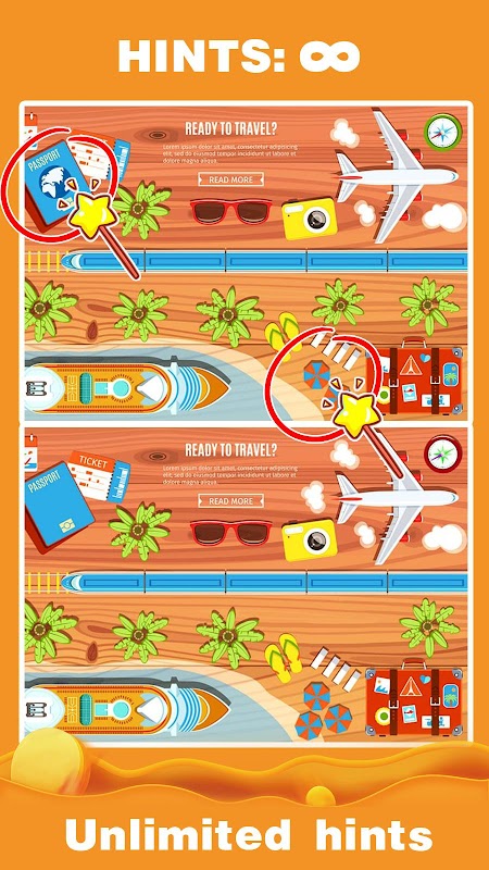 ● Find the differences game with unlimited hints!