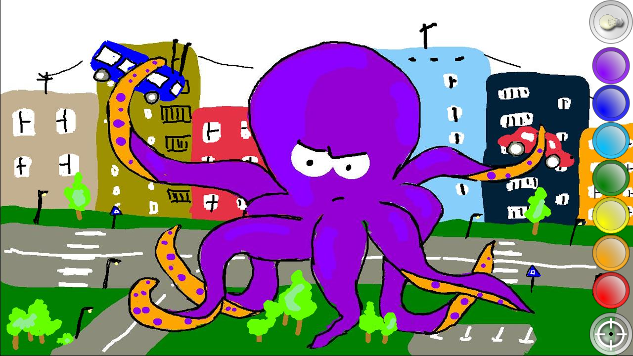 * Just slide to scroll through the palette, change the brush size, save your drawings into the gallery
