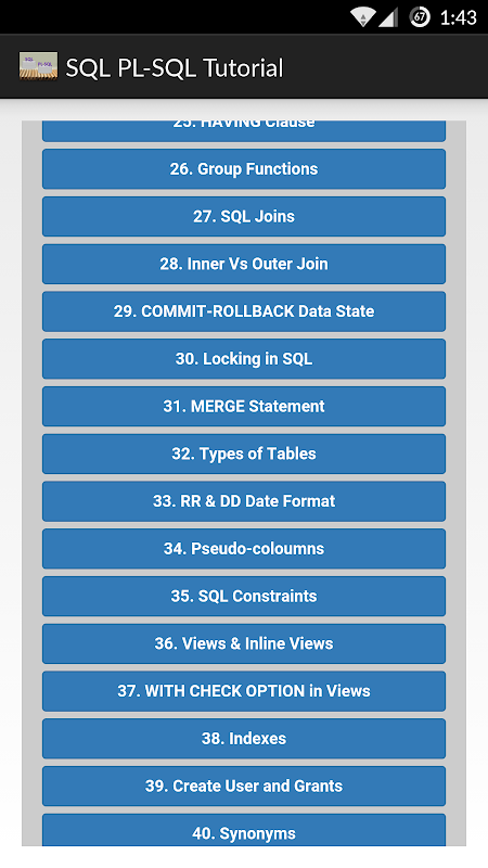 다음은 응용 프로그램에서 다루는 SQL 및 PL-SQL 항목의 목록입니다 :