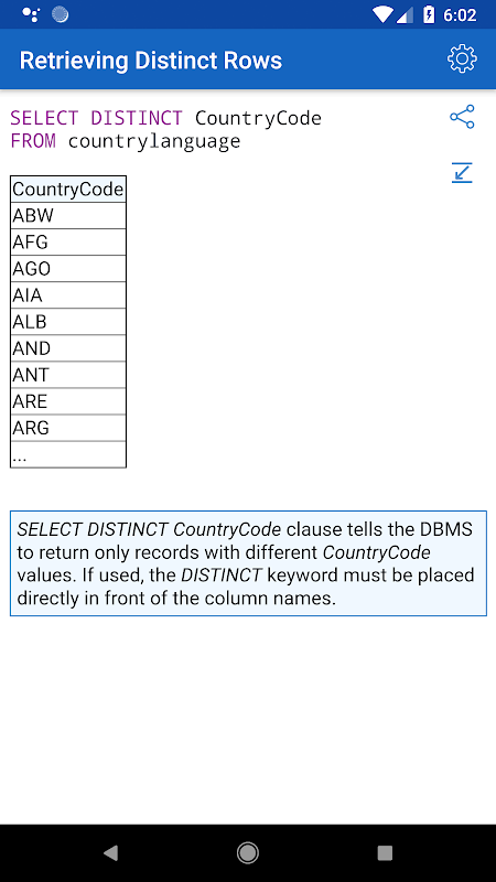 ✓ 특정 코드 예제에 대한 SQL 구문을 학습합니다. 단일 쿼리로 여러 테이블을 결합하는 방법은 무엇입니까? 데이터 그룹화 결과를 정렬하는 방법은 무엇입니까? SQL Server에는 어떤 유형의 데이터가 있나요? 이 애플리케이션과 150개가 넘는 SQL용 기타 코드 샘플을 애플리케이션에서 사용할 수 있습니다.
