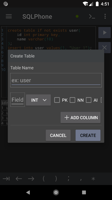 SQLPhone은 휴대폰에서 로컬로(서버 없이) SQL 명령을 실행, 편집 및 실행하기 위한 강력한 응용 프로그램입니다. 학생들이 SQL 쿼리 데이터베이스를 배울 수 있도록 설계되었습니다.