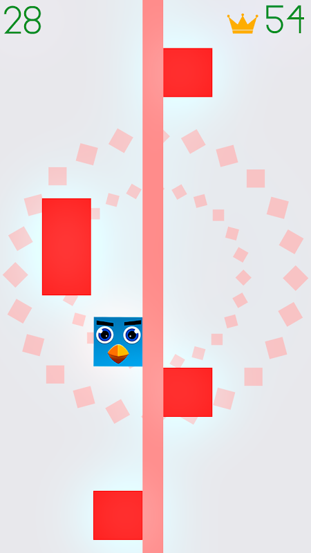 The one touch game play makes it easier and more fun and challenging, touch the screen to rotate the little square cute bird and avoid the square obstacles.