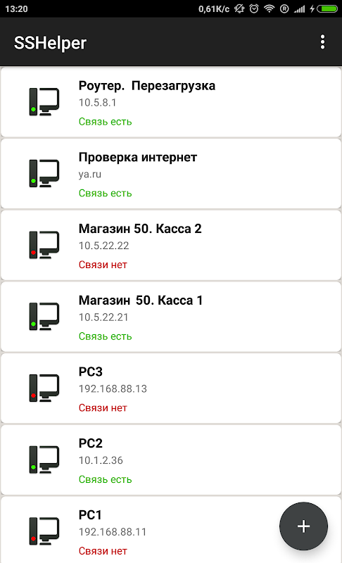SSHelper 신속 일일 작업 및 모니터링 장치의 제어 버튼을 만들 수 있습니다. 제어 명령의 전송 SSH를 통해 이루어집니다. 따라서, 당신은 명령의 사용자 설정에있는 버튼을 할당 할 수 있습니다 신속하게 필요한 경우, 장치에 이러한 명령을 전송합니다.