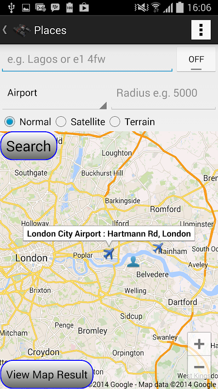 3) Displays places around you (with full address information) such as airports, schools, embassy, police station, train stations etc