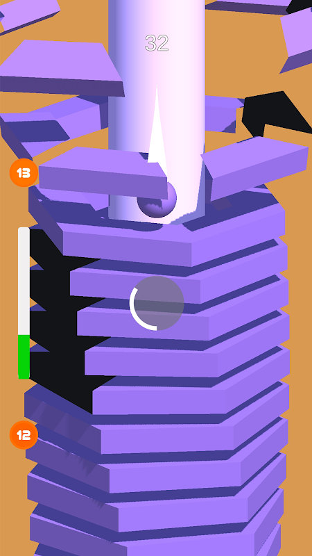 Press and hold on the screen and let the ball go down without touching the obstacles! Hold as long as possible to make a combo and break the black blocks. Let the ball fall down from the helix stacks.