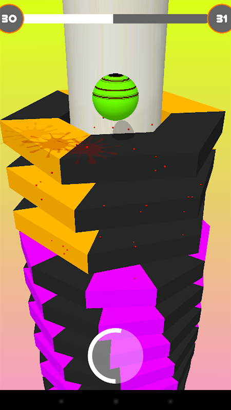✤ 스택 범프의 전제는 매우 간단합니다. 끊임없이 움직이는 조각으로 만들어진 타워의 바닥에 공을 가져가야 합니다. 공이 가는 데 도움이 되도록 화면을 탭하여 조각을 부수는 것뿐이지만 검은색 영역을 탭하지 않도록 주의해야 합니다. 그렇지 않으면 게임이 즉시 종료됩니다. 연속으로 수많은 조각을 부수면 발열 모드가 시작되며, 그 동안 페널티 없이 검은 구역을 통과할 수 있습니다.