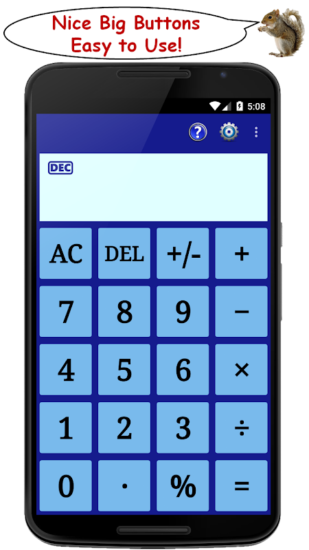 사용 가능한 간단하고 사용하기 쉬운 계산기는 기본 설치된 모델보다 기능적으로 설계되었습니다. 또한 팁 계산기와 대출 계산기가 포함되어 있습니다. 둘 다 메뉴에서 액세스 할 수 있습니다. 주 계산기의 기능은 다음과 같습니다.