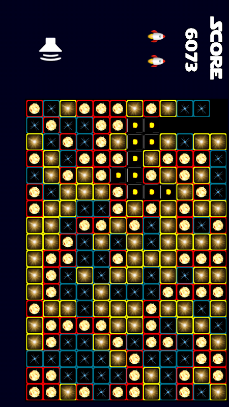 Instructions: Destroy all the stars by clicking them in groups of the same color. You need to use a rocket if you want to remove a single star.